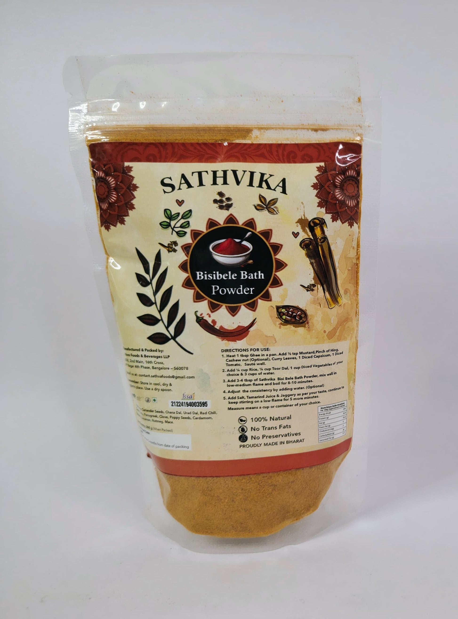 A total of around 22 Spices goes into Sathvika's Bisibele Bath Powder, making your Bisibele Bath Authentic and Special.