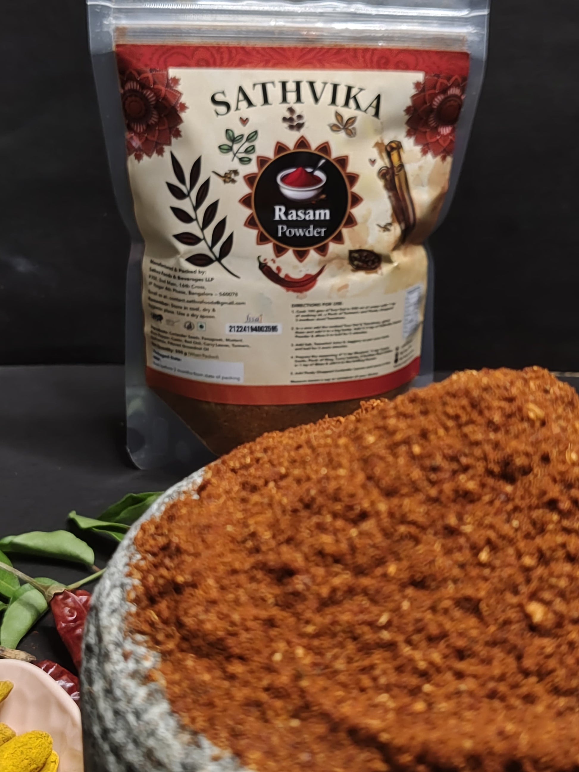 Enhance your meals with the authentic taste of South India using our Homemade Rasam Powder. Made with Fresh, Handpicked Spices and NO Preservatives, this aromatic blend ensures a flavorful, tangy, and comforting Rasam in minutes. Perfect for digestion and immunity. Our Rasam Powder brings home the true essence of Karnataka’s culinary heritage as it is made without preservatives, artificial colors, or MSG.